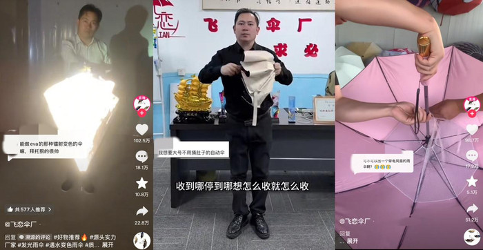在飞恋伞厂的商品橱中,几乎所有产品灵感都来源于抖音评论区,将用户需求直接转化为研发指令的模式,让伞叔卖的早已不是伞,而是一种“你的需求我来满足”的极致情绪价值和参与感。